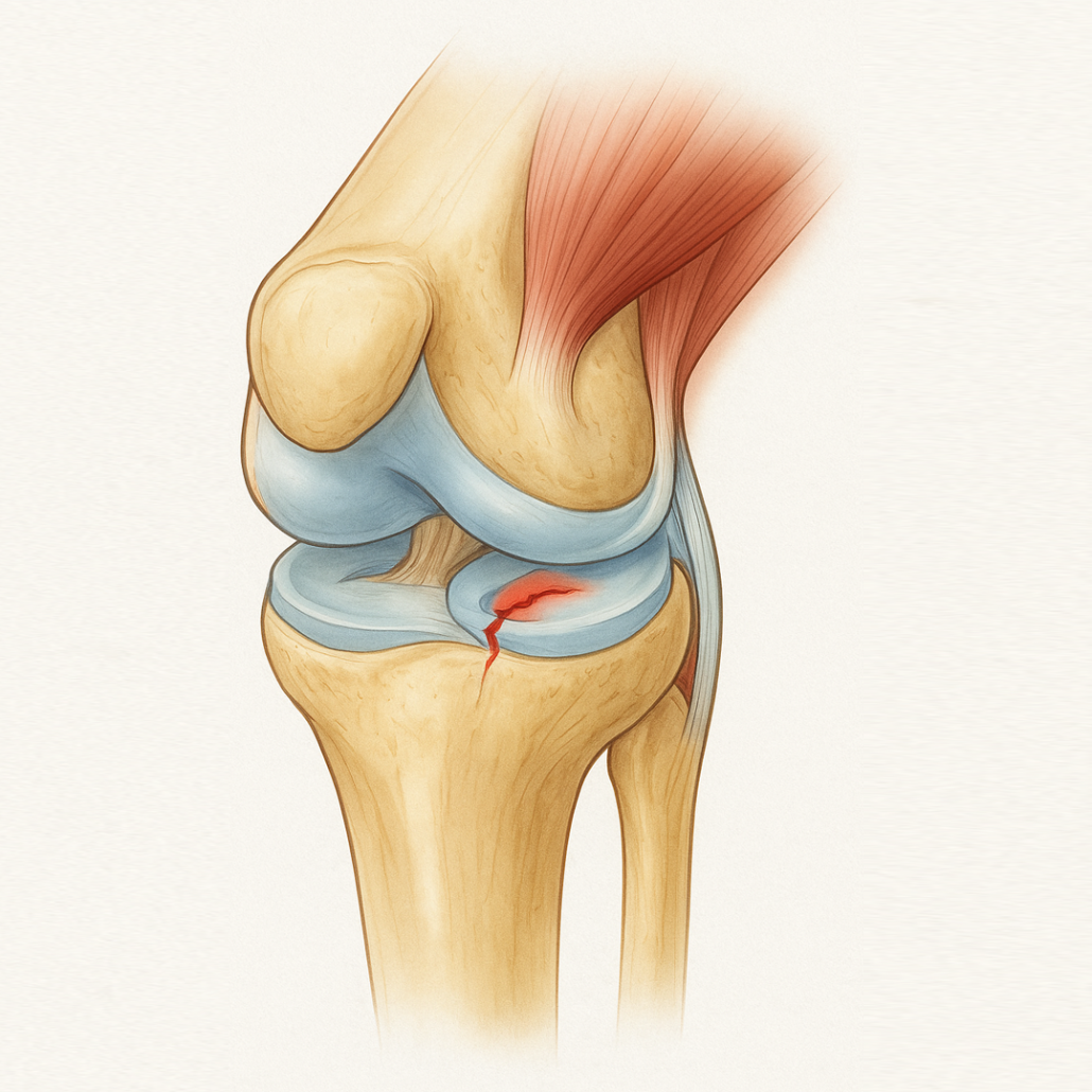 El término meniscopatía hace referencia a cualquier alteración estructural del menisco, incluyendo desgarros traumáticos, degeneración progresiva o combinaciones de ambos. Estas patologías pueden presentarse de forma aguda, tras un traumatismo directo o un giro forzado de la rodilla, o de forma crónica, por sobrecarga repetitiva, degeneración y envejecimiento del cartílago meniscal.
